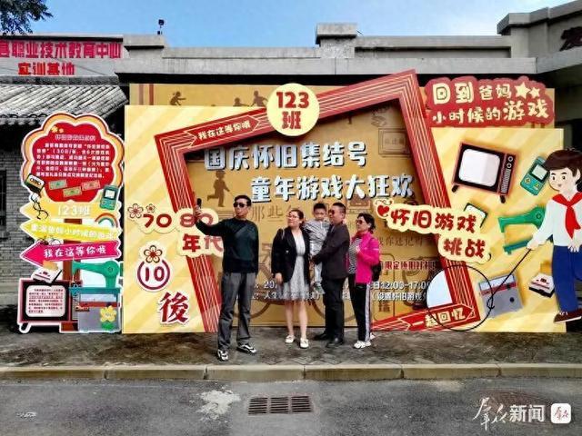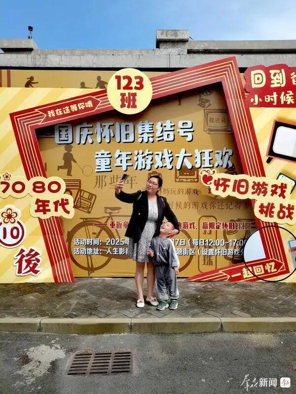 在人生影视城“70”“80”致青春怀旧小游戏现场,游客或亲子互动,或与同伴合作,跳房子、翻花绳、滚铁环、踢毽子……大家在“旧时光”里重拾儿时记忆。