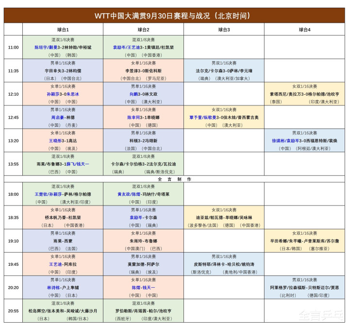 女单:孙颖莎3-0朱思冰、陈幸同3-1单晓娜(德国)、王晓彤3-1高达(埃及)。