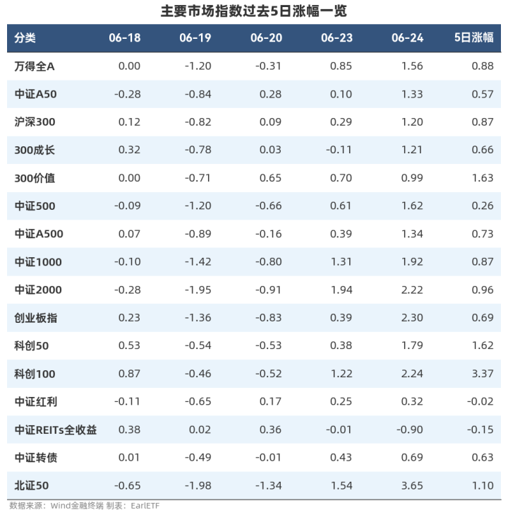 6月24日,主要市场指数中,表现最好的是北证50,涨跌幅为+3.65%,表现最差的是中证REITs全收益,涨跌幅为-0.90%。